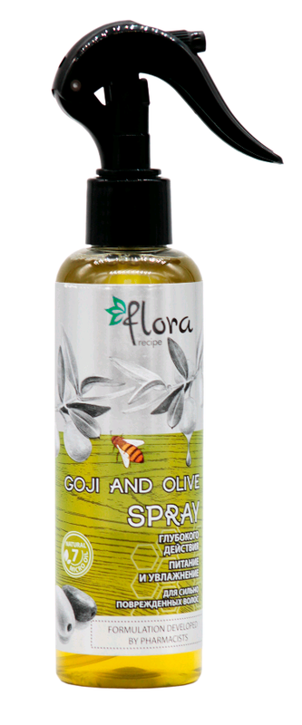 Спрей-еліксир. Живлення та зволоження. Для сильно пошкодженого волосся (з оливкою олією та олією ягід годжі) Flora Recipe 200 мл